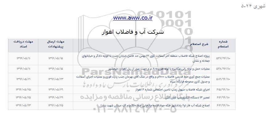 اجرای شبکه فاضلاب منهول پمپ تامین اجتماعی شماره 6 اهواز | 96.5.29 | 96.5.25 |