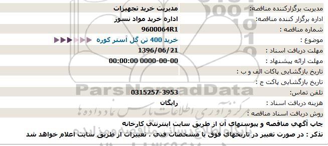 استعلام خرید 400 تن گل آستر کوره , استعلام , استعلام خرید 400 تن گل آستر کوره