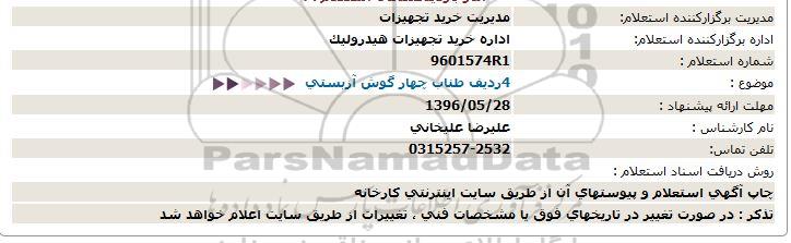 اداره برگزارکننده استعلام:     اداره خرید تجهیزات هیدرولیک
