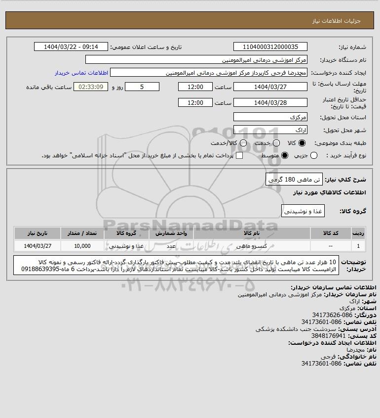 شرح کلی نیاز: تن ماهی 180 گرمی