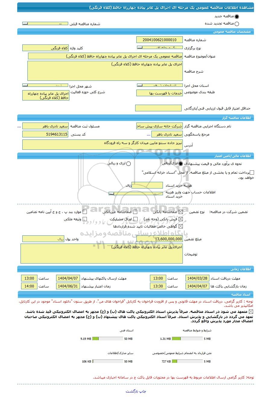 | مبلغ تضمین | 13,600,000,000 | واحد پول | ریال |