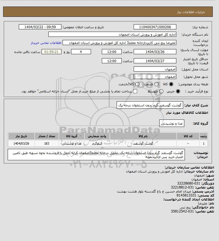 1 -- گوشت گوسفند کیلوگرم غذا و نوشیدنی 183 1404/03/26