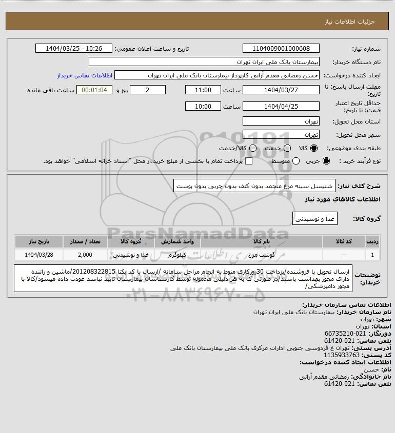 نام سازمان خریدار: بیمارستان بانک ملی ایران تهران