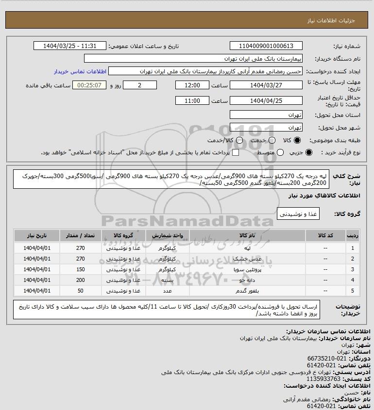 5 -- بلغور گندم عدد غذا و نوشیدنی 50 1404/04/01