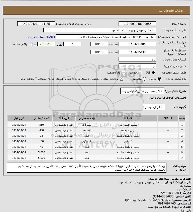 نام دستگاه خریدار:اداره کل اموزش و پرورش استان یزد
