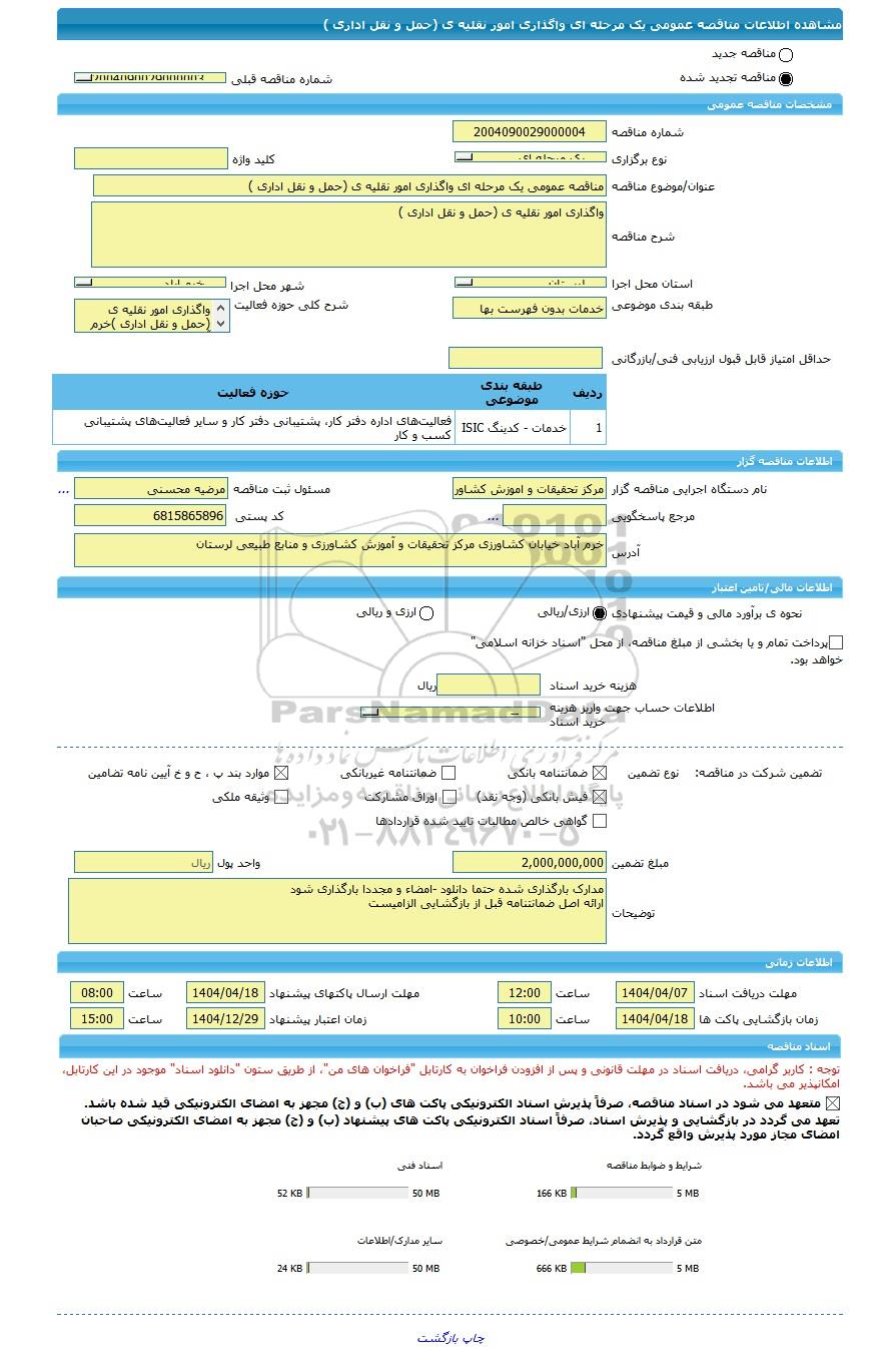 | مبلغ تضمین | 2,000,000,000 | واحد پول | ریال |