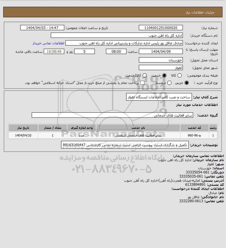 شرح کلی نیاز: ساخت و نصب کانتر اطلاعات ایستگاه اهواز