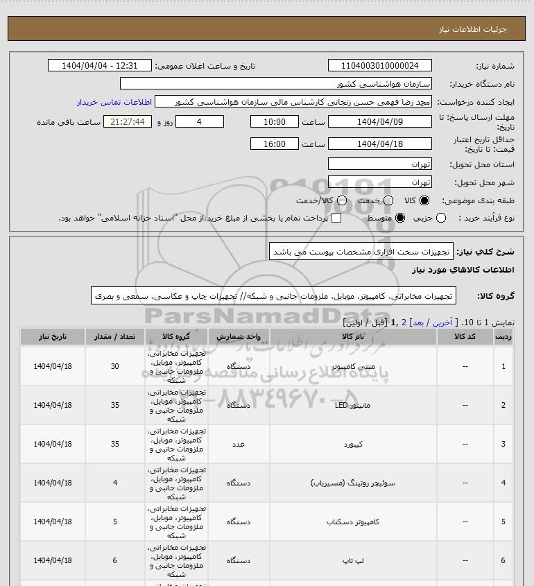 شرح کلی نیاز: تجهیزات سخت افزاری