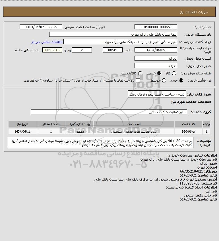 شرح کلی نیاز: تهیه و ساخت و نصب پنجره ترمال بریک