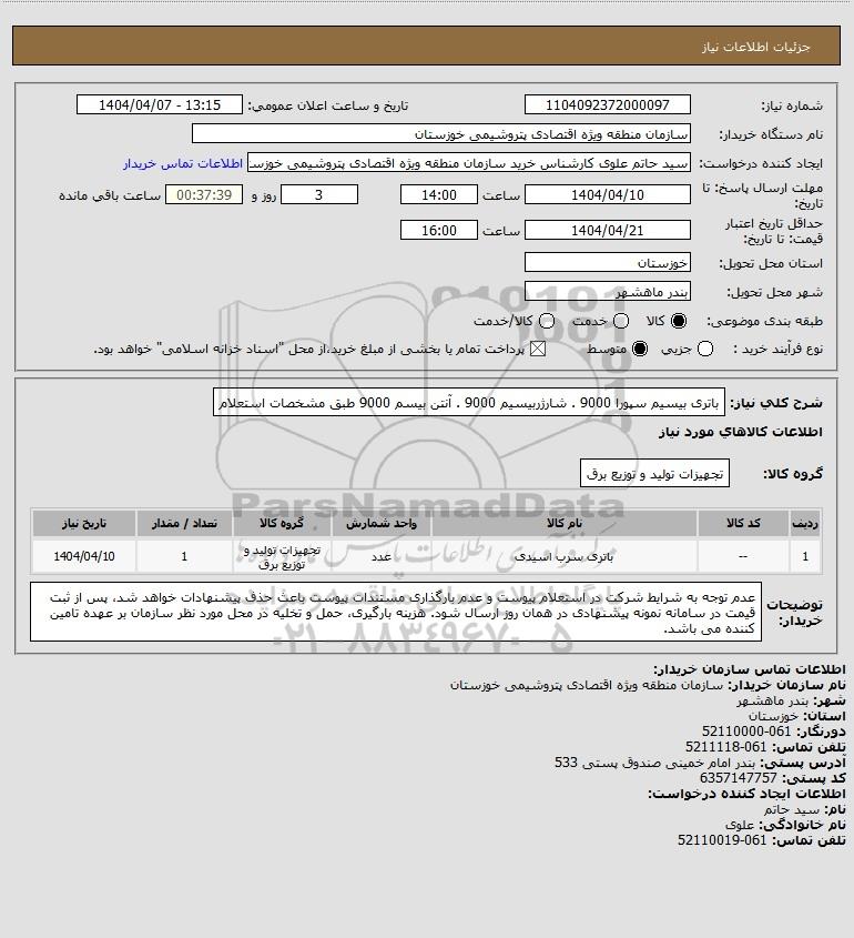 نام دستگاه خریدار:سازمان منطقه ویژه اقتصادی پتروشیمی خوزستان