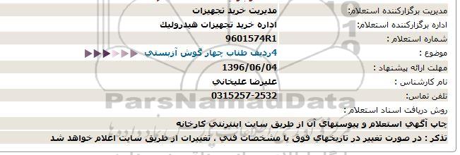 اداره برگزارکننده استعلام: اداره خرید تجهیزات هیدرولیک
