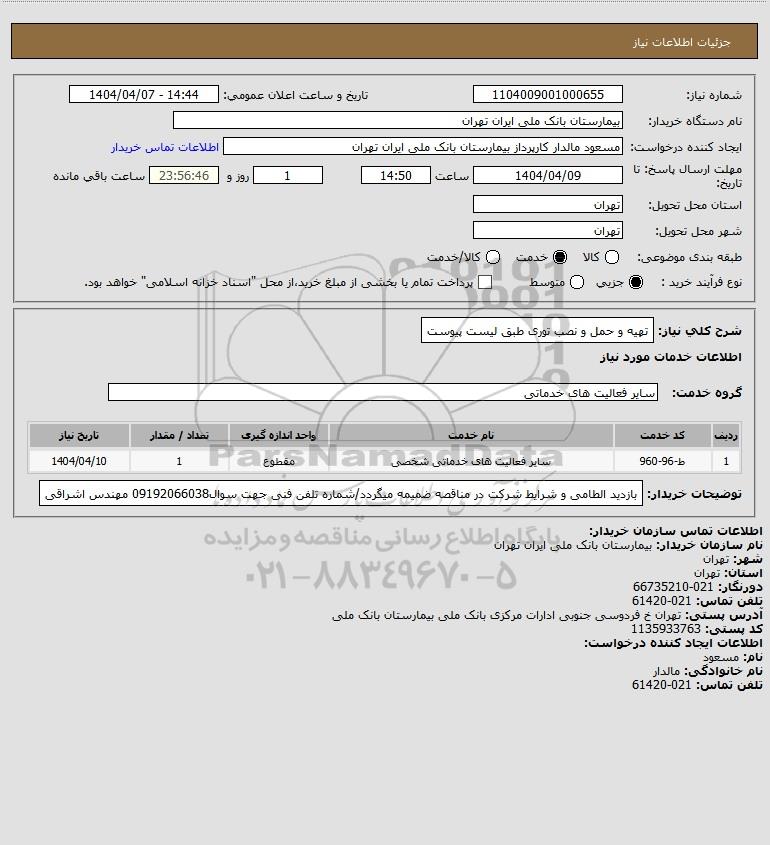 نام دستگاه خریدار:بیمارستان بانک ملی ایران تهران