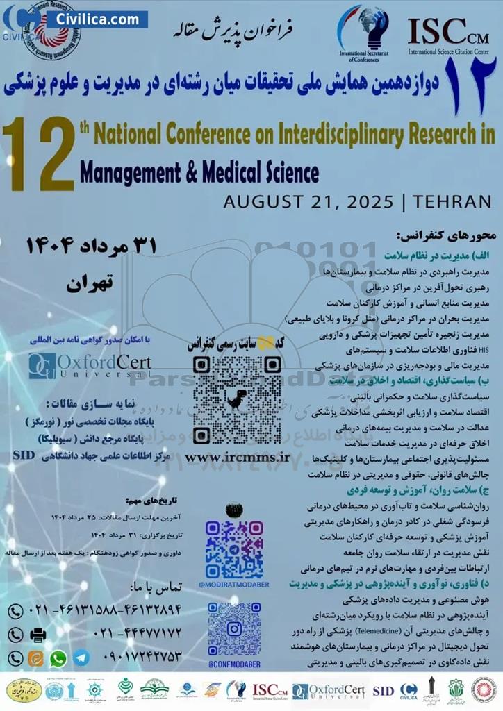 دوازدهمین همایش ملی تحقیقات میان رشته ای در مدیریت و علوم پزشکی