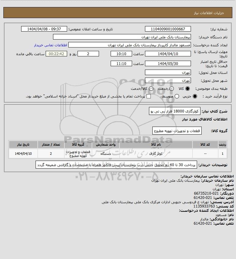 نام دستگاه خریدار:بیمارستان بانک ملی ایران تهران