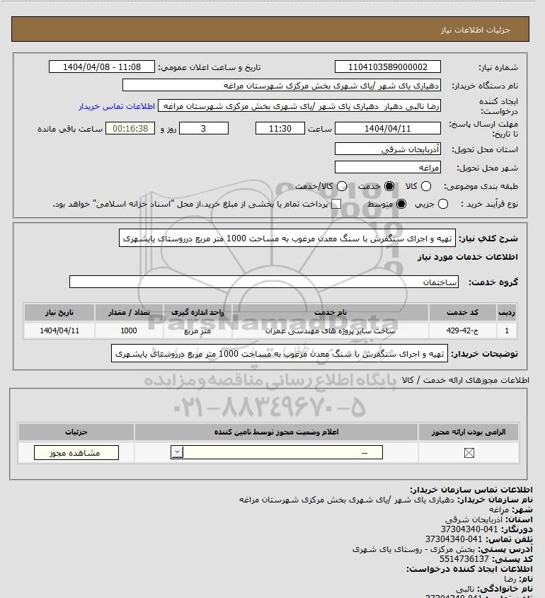 نام سازمان خریدار: دهیاری یای شهر /یای شهری بخش مرکزی شهرستان مراغه