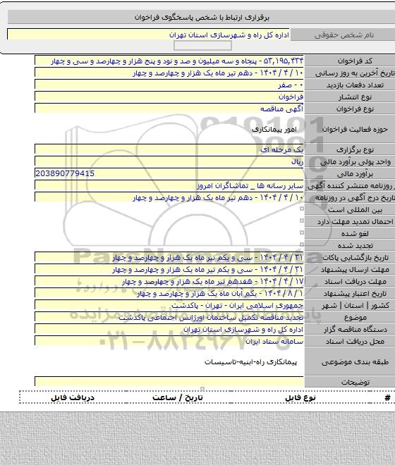 برای شرکت در مناقصه حتما از تصویر آگهی در سایت پارس نماد داده ها استفاده نمایید