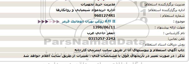 اداره برگزارکننده استعلام: اداره خریدمواد شیمیایی و روانکارها