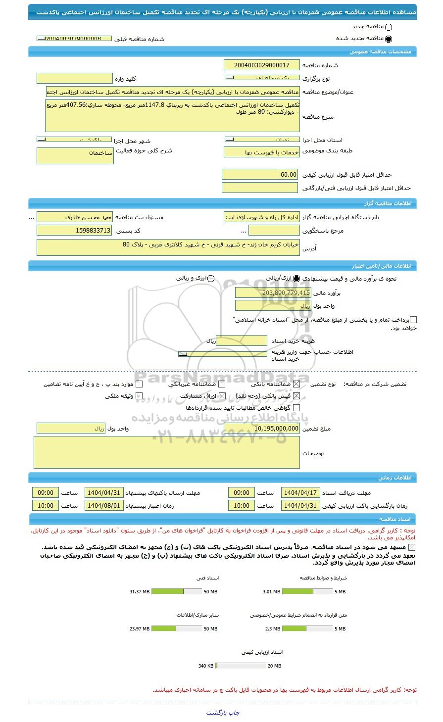 | مبلغ تضمین | 10,195,000,000 | واحد پول | ریال |