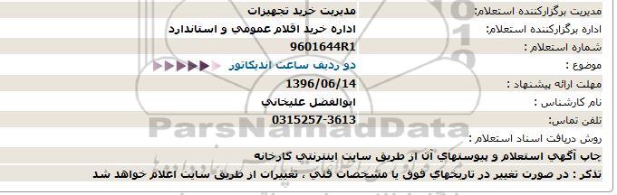 استعلام بها و موضوع استعلام استعلام، استعلام دو ردیف ساعت اندیکاتور به اطلاع کلیه شرکتها و افراد متخصص واجد شرایط میرساند، آگهی گذار در نظر دارد از طریق استعلام بها، نسبت به انتخاب و دریافت پیشنهادات اقدام نماید. این استعلام با کد آگهی ثبت شده در سامانه خبرگزاری پارس نماد : 922530 منتشر شده است. مشخصات استعلام : تاریخ شروع استعلام: 1396/06/06 آخرین مهلت ارسال پیشنهاد قیمت : 1396/06/14 و محل اجرای پروژه : استان اصفهان میباشد. استعلام قیمت مورد درخواست : استعلام، استعلام دو ردیف ساعت اندیکاتور با دستهبندیهای تخصصی و گروه های مرتبط : ابزار دقیق, استعلام اطلاع رسانی میگردد.