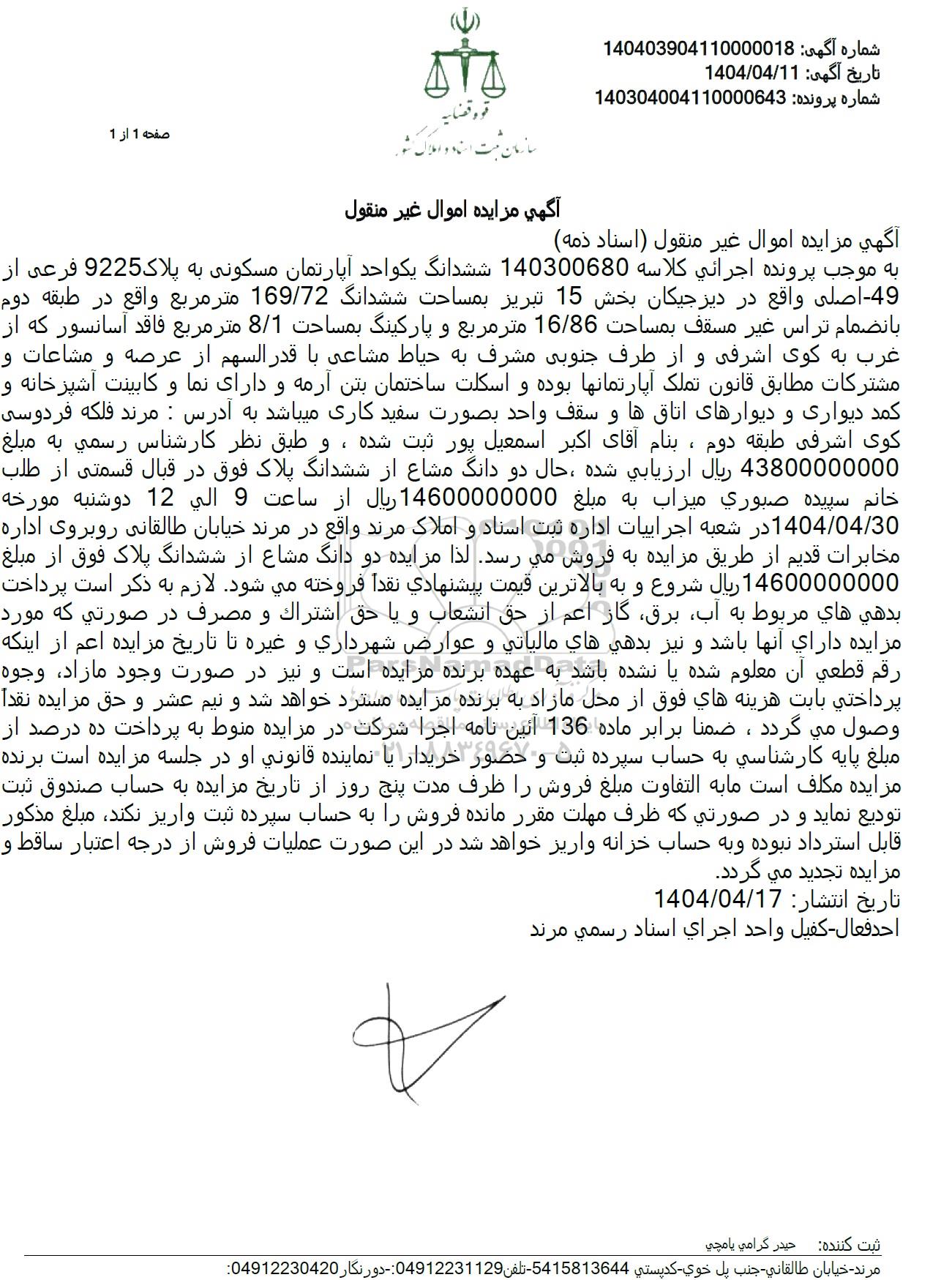 شماره آگهی: 140403904110000018