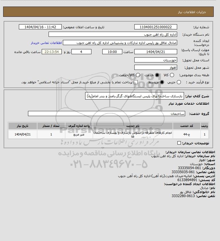نام دستگاه خریدار:اداره کل راه اهن جنوب