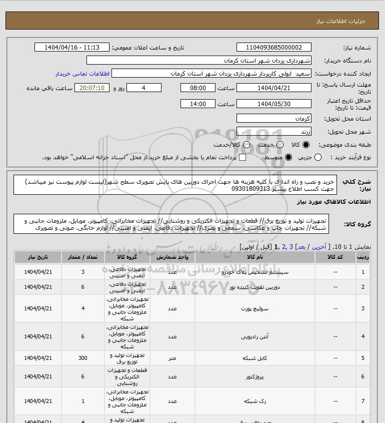 استعلام خرید و نصب و راه اندازی با کلیه هزینه ها جهت اجرای دوربین های پایش تصویری سطح شهر(لیست لوازم پیوست نیز میباشد) جهت کسب اطلاع بیشتر 09301809313, استعلام خرید و نصب و راه اندازی با کلیه هزینه ها جهت اجرای دوربین های پایش تصویری سطح شهر(لیست لوازم پیوست نیز میباشد) جهت کسب اطلاع بیشتر 09301809313