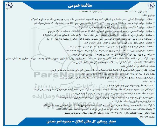 مناقصه عمومی عملیات اجرای شناژ تحتانی 50 در 35 سانتیمتر با میلگرد گذاری... / نوبت دوم از کلیه افراد متخصص و شرکتها واجد شرایط دعوت به عمل میآید در مناقصه با کد خبرگزاری پارس نماد: 9235089 شرکت نمایند.