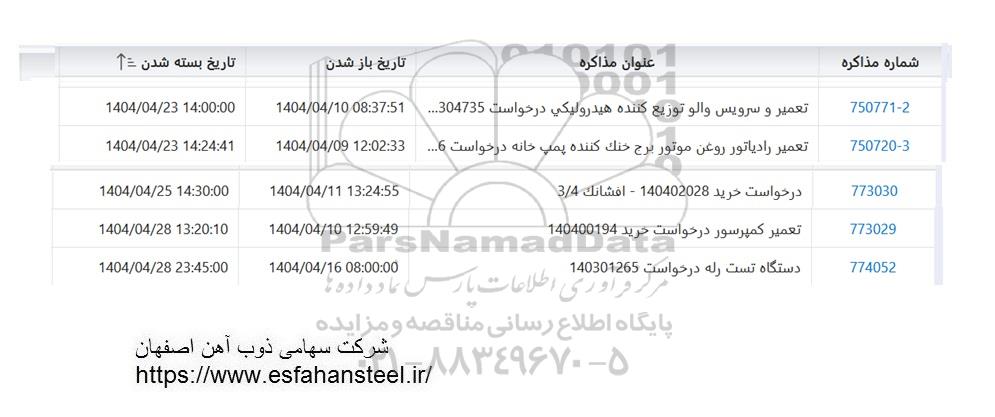 773029 تعمیر کمپرسور درخواست خرید 140400194 1404.4.10 1404.4.29