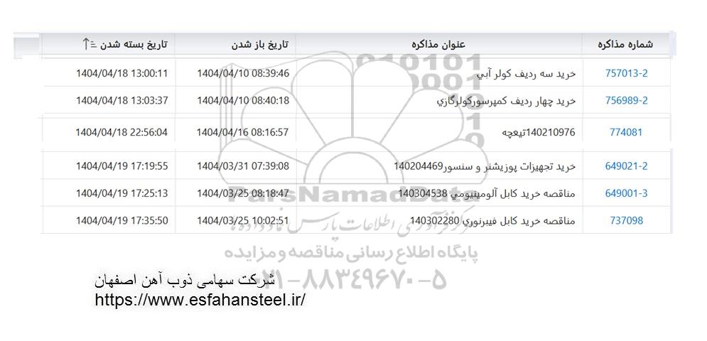 | 649001-3 | مناقصه خرید کابل آلومینیومی 140304538 | 1404.4.19 |
