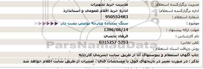اداره برگزارکننده استعلام: اداره خرید اقلام عمومی و استاندارد