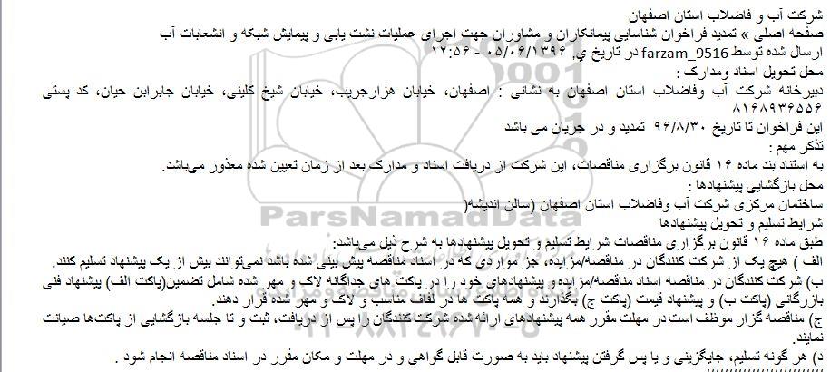 تمدید فراخوان شناسایی پیمانکاران و مشاوران جهت اجرای عملیات نشت یابی و پیمایش شبکه و انشعابات آب