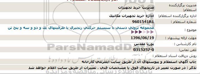 استعلام مجموعه ترولی دستی با سیستم حرکتی زنجیری, استعلام مجموعه ترولی دستی با سیستم حرکتی زنجیری