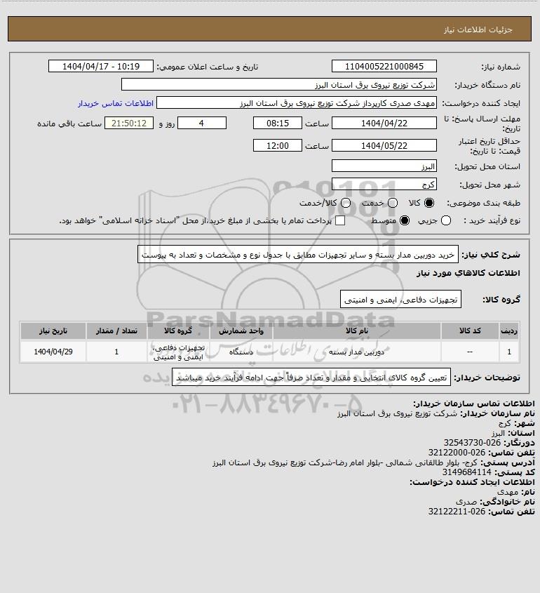 نام دستگاه خریدار:شرکت توزیع نیروی برق استان البرز
