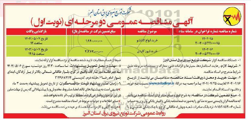 1-- دستگاه مناقصه گزار : شرکت توزیع نیروی برق استان البرز