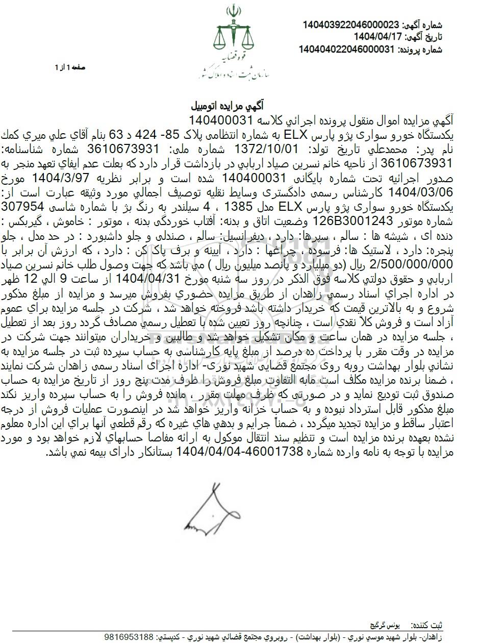 تاریخ مزایده: روز سه شنبه مورخ 1404.04.31 از ساعت 9 الی 12