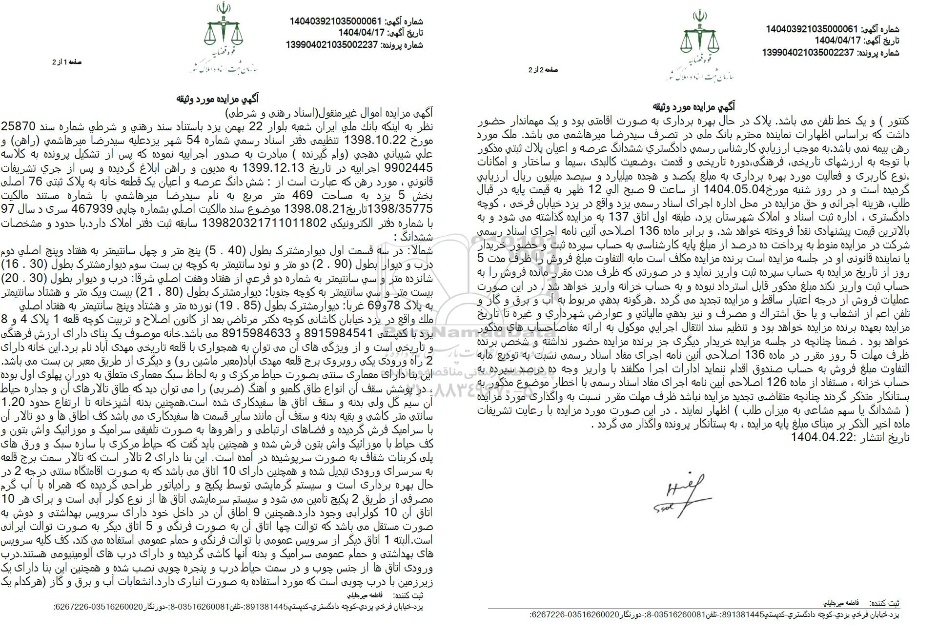 مزایده ششدانگ عرصه و اعیان یک قطعه خانه پلاک ثبتی 76 , مزایده ششدانگ عرصه و اعیان یک قطعه خانه پلاک ثبتی 76