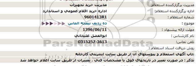 اداره برگزارکننده استعلام: اداره خرید اقلام عمومی و استاندارد