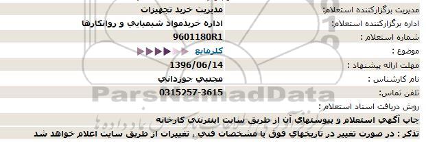 اداره برگزارکننده استعلام: اداره خریدمواد شیمیایی و روانكارها