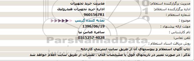 اداره برگزارکننده استعلام: اداره خرید تجهیزات هیدرولیک