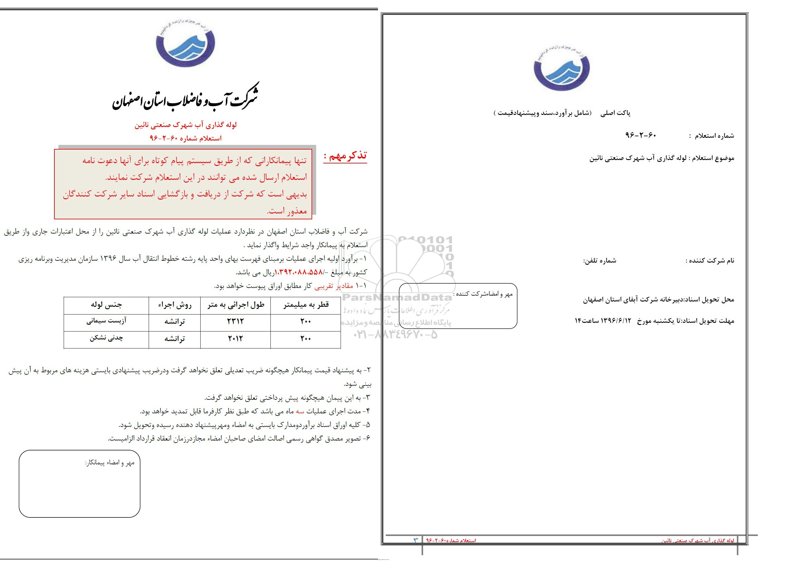 برای شرکت در مناقصه حتما از تصویر آگهی در سایت پارس نماد داده ها استفاده نمایید