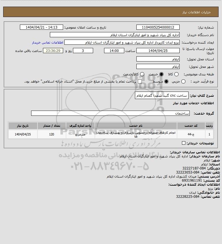 استعلام ساخت cnc گنبد شهدا گمنام ایلام, استعلام ساخت cnc گنبد شهدا گمنام ایلام