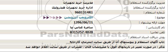 اداره برگزارکننده استعلام: اداره خرید تجهیزات هیدرولیک