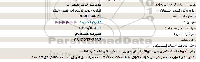 اداره برگزارکننده استعلام: اداره خرید تجهیزات هیدرولیک