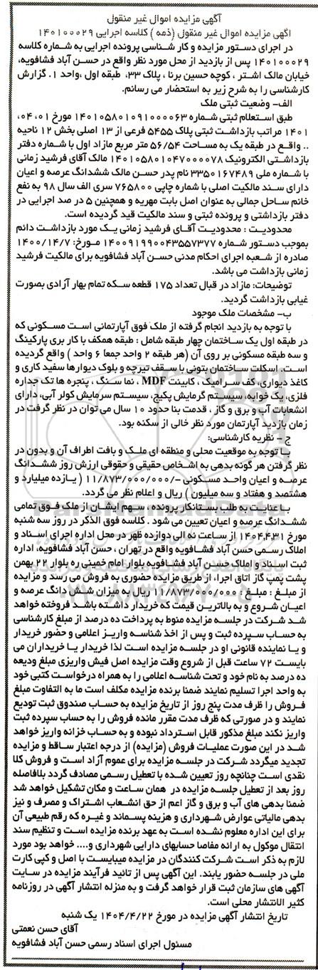 مزایده از ساعت 9 الی 12 روز سه شنبه مورخ 1404.04.31