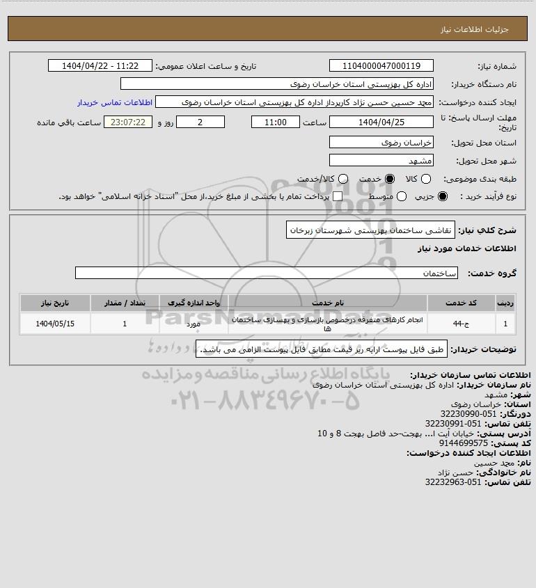 شرح کلی نیاز: نقاشی ساختمان بهزیستی شهرستان زبرخان
