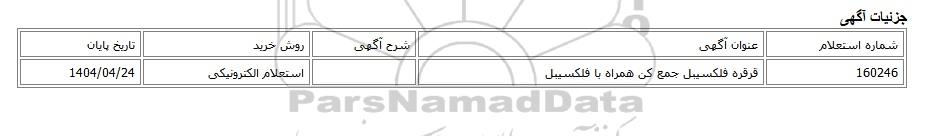 | 160246 | قرقره فلکسیبل جمع کن همراه با فلکسیبل | استعلام الکترونیکی | 1404/04/24 |