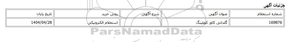 | 169876 | گلدانی کاور کوپلینگ | استعلام الکترونیکی | 1404/04/28 |