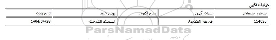 | 154030 | فن هوا AERZEN | استعلام الکترونیکی | 1404/04/28 |
