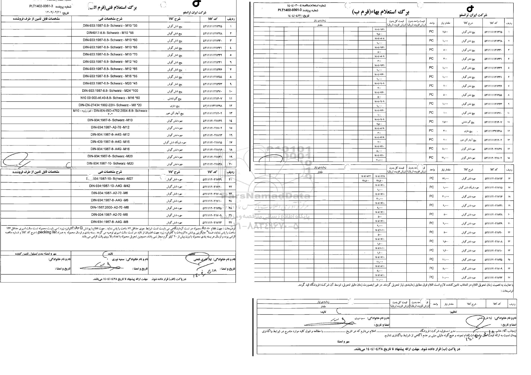 | 26 | 521112021709 | مهره شش گوش | 5.000 | PC | 1404.08.10 5.000 |