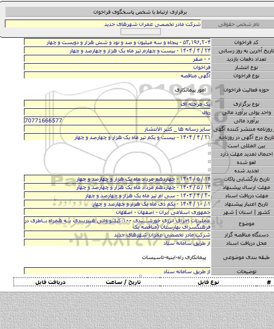 این مناقصه در تاریخ 1404/04/23 شروع و مهلت آن تا تاریخ 1404/04/30 میباشد.